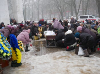 З живими квітами в руках, стоячи на колінах, присутні на скорботній церемонії схиляли голови в глибокій шані та дякували Захиснику за все, що він зробив в ім’я України та кожного її громадянина. Священнослужителі здійснили чин заупокійної молитви за Героєм.