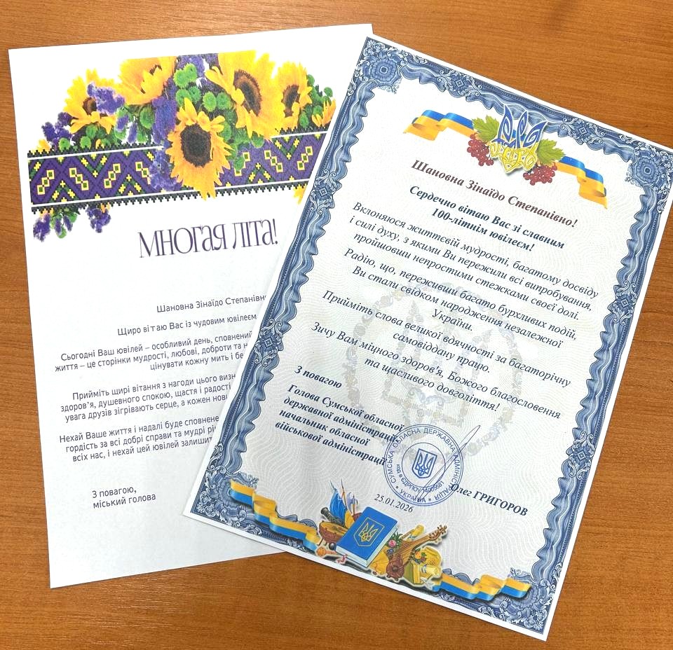 У цей знаменний день міський голова Олег СТОГНІЙ та голова Сумської обласної військової адміністрації Олег ГРИГОРОВ щиро бажають Зінаїді Степанівні міцного здоров’я, душевного спокою та ще багатьох світлих днів у колі рідних і близьких. Нехай кожен ранок починається з Вашої усмішки, а серце зігрівають любов, турбота та повага дітей, онуків і правнуків. Нехай Господь дарує довгі роки життя, наповнені теплом, миром і радістю, а пам’ять зберігає лише добрі спогади. Бажаємо, щоб життєва мудрість і щирість Зінаїди Степанівни ще довго були джерелом натхнення для всіх, хто має щастя бути поруч із нею. Нехай у домі завжди панують злагода, добробут і світло, а кожен день приносить відчуття любові та вдячності за прожите життя.
