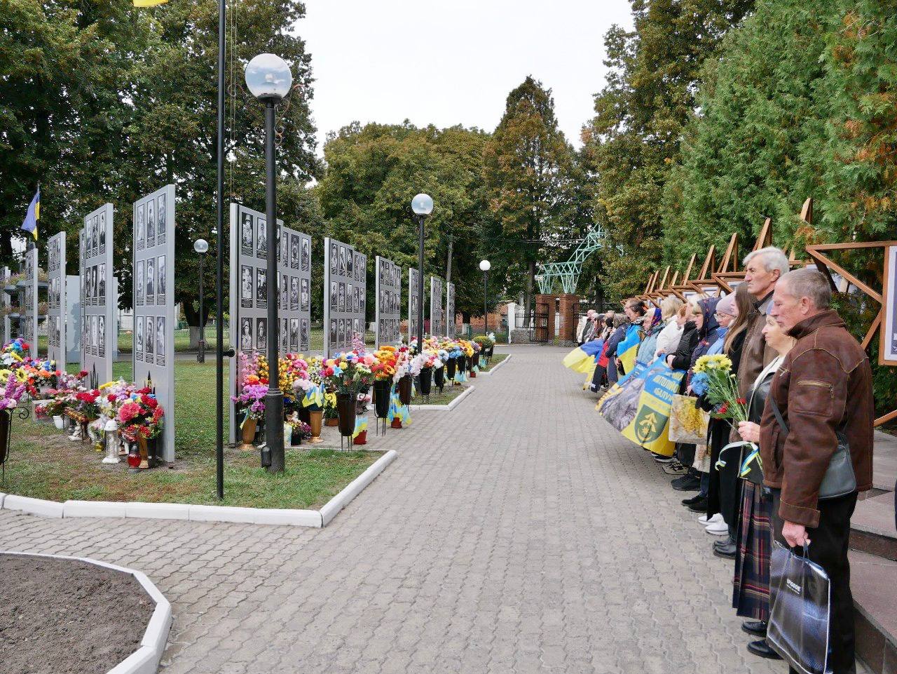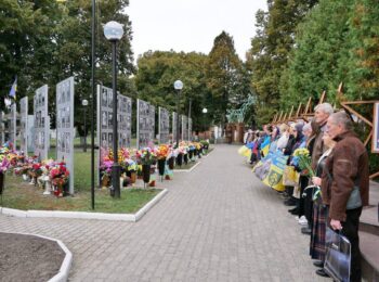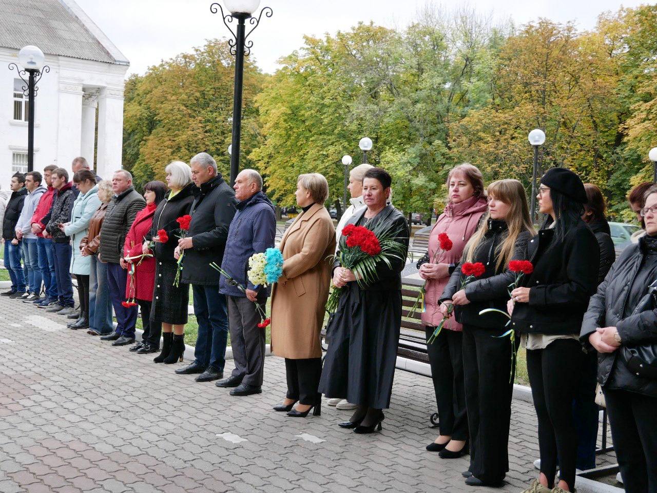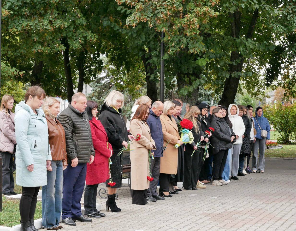 На Алеї Слави Роменський міський голова Олег СТОГНІЙ разом з головою Роменської районної державної адміністрації – начальником районної військової адміністрації Валентиною НАЗАРЕНКО, родинами загиблих Героїв, представниками установ та організацій громади, членами Молодіжної ради, студенською молоддю та небайдужими мешканцями хвилиною мовчання вшанували пам’ять усіх полеглих Героїв, які віддали життя за мир і свободу, а також поклали квіти до пам’ятника Петру Калнишевському.