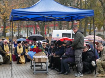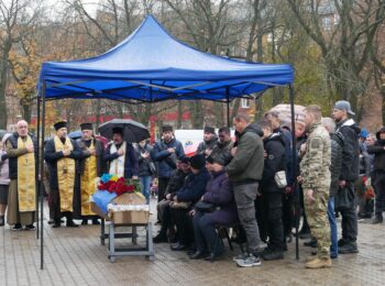 У скорботі присутні схилили голови та вшанували пам’ять Захисника хвилиною мовчання. Літію за загиблим бійцем відслужили священнослужителі Православної церкви України.