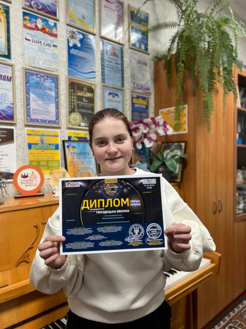 – ГВОЗДЕЦЬКУ Евеліну (викладач Ольга Перешивайло), яка виборола І місце у Всеукраїнській щорічній премії «ДИНАМІКА УСПІХУ»;