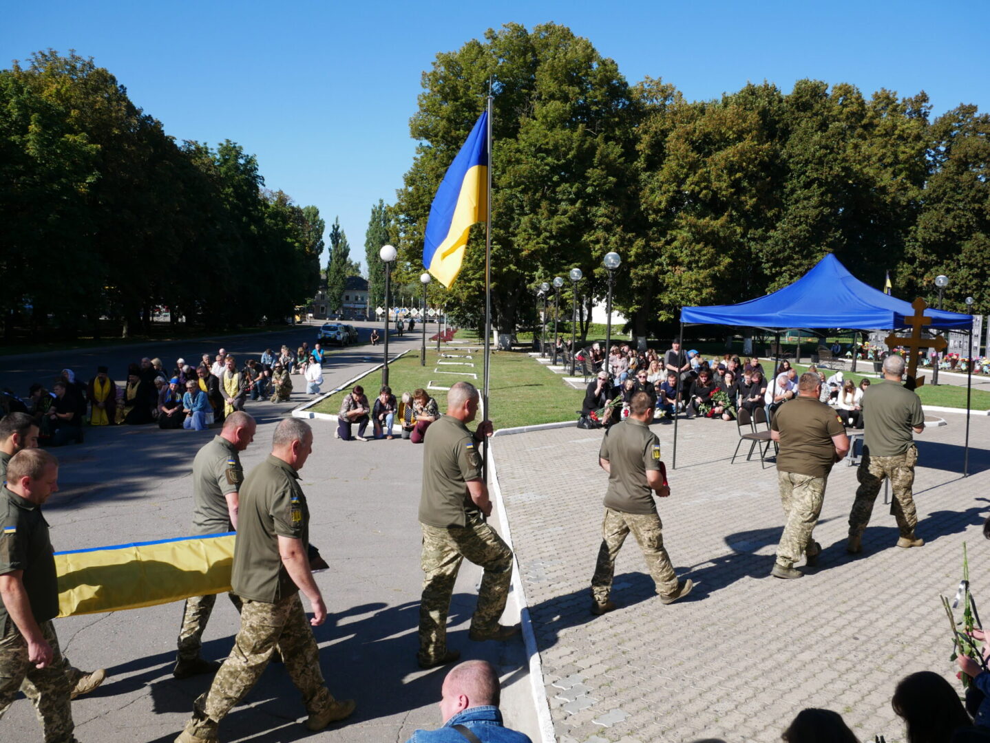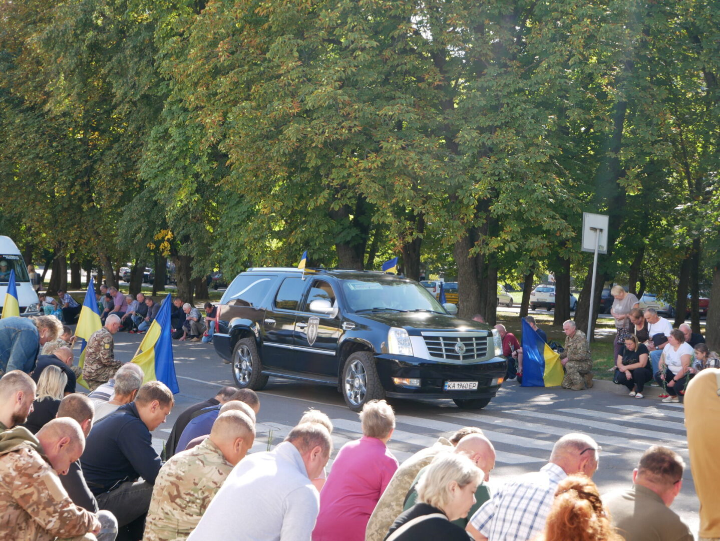 Провести Героя в останню путь живим коридором зібралися рідні, керівництво громади, священнослужителі, друзі, військові, побратими та небайдужі мешканці.