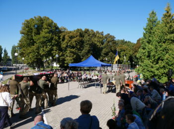 Після чого пам’ять загиблого Воїна було вшановано хвилиною мовчання. Під супровід оркестру жалобна процесія провела загиблого Героя Геннадія НОРЦЯ до місця останнього спочинку.