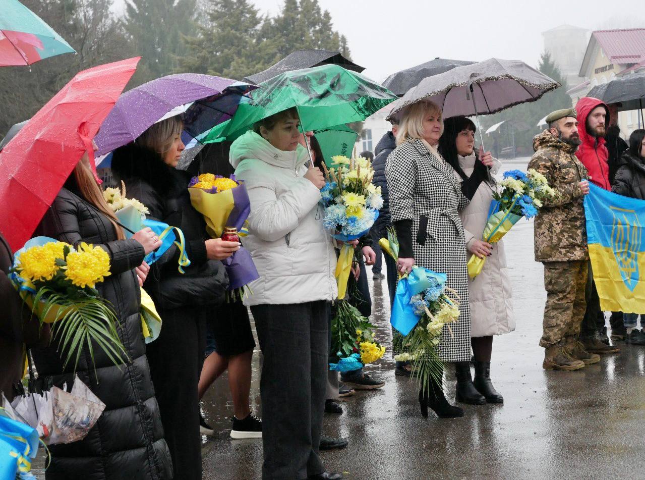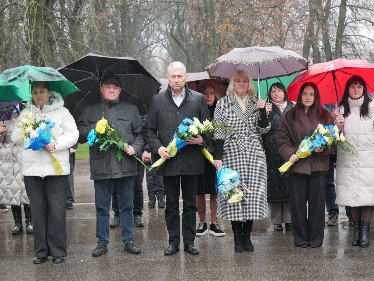 До присутніх звернувся міський голова Олег Стогній, який наголосив на історичній значущості свята: «Сьогодні ми відзначаємо День Гідності та Свободи — свято сили, пробудження та незламності українського духу. Недарма кажуть: «Єдність народжується там, де живе гідність». Цей день є нагадуванням про те, що під час Революції Гідності українці не просто відстояли своє європейське майбутнє, а здобули першу велику перемогу у сьогоднішній війні — перемогу небайдужості й хоробрості над беззаконням. Подвиг Героїв Небесної Сотні назавжди закарбований у нашій пам’яті як символ найвищої любові до Батьківщини та демонстрація сили людського духу, який не дозволив себе принизити. Ми боремось проти російського агресора, бо маємо гідність, і стоїмо, бо маємо свободу. Зараз ми творимо новий виток історії, і лише від нас залежить, як про нас скажуть майбутні покоління. Ми маємо бути сильними, адже тільки сильні здатні зберігати гідність, а і творити майбутнє! Слава Україні!».