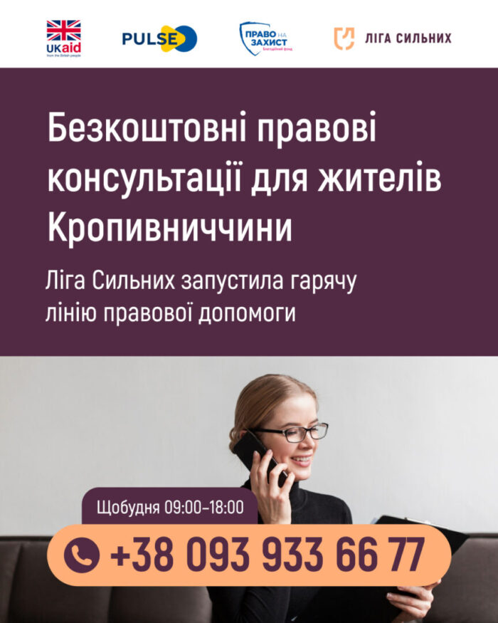 Гаряча лінія Ліги Сильних — безкоштовні первинні правові консультації: що вам належить, чи правомірно з вами вчинили, куди звернутись і який перший крок зробити.