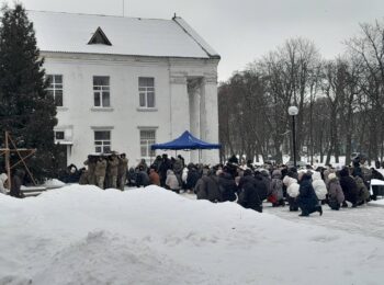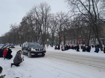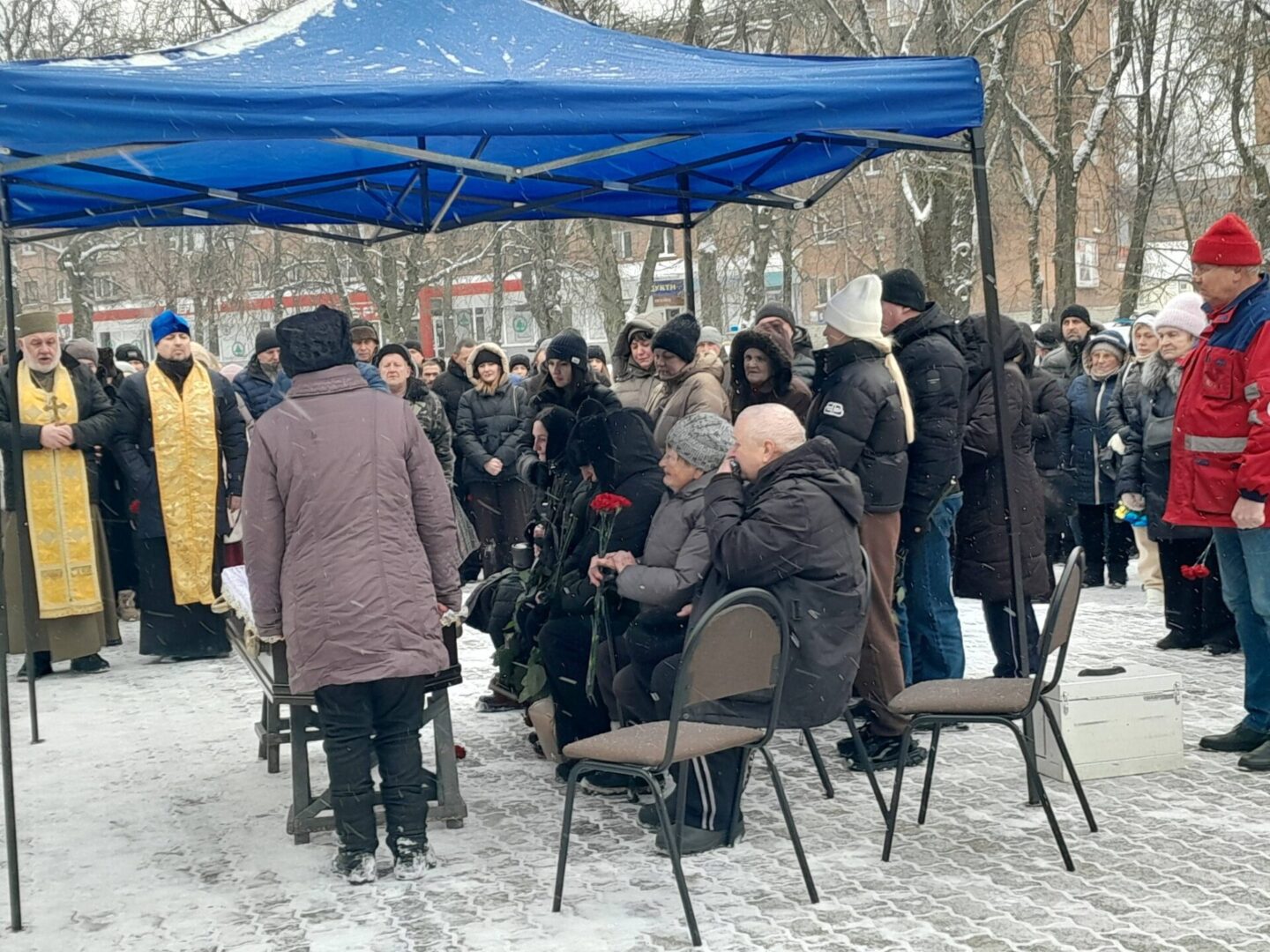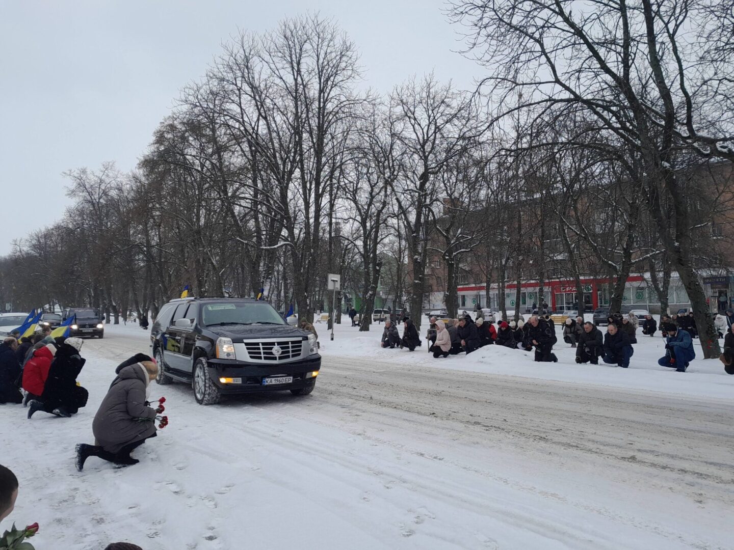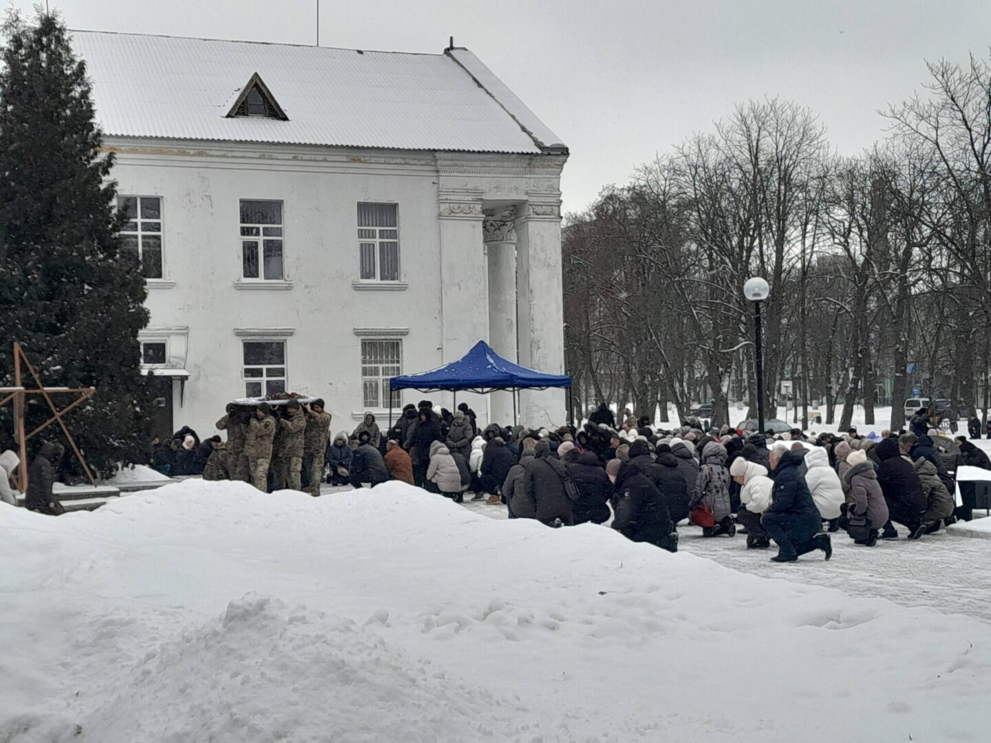 Стоячи на колінах, зі сльозами на очах, страшною тугою в серці усі присутні віддали шану Захиснику України Сергію БЛІНОВУ, провівши Воїна в останню путь.