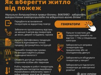 ДСНС України наголошує на неухильному дотриманні правил безпеки під час використання електрогенераторів, оскільки пересувні електростанції є джерелом підвищеної небезпеки!
