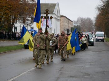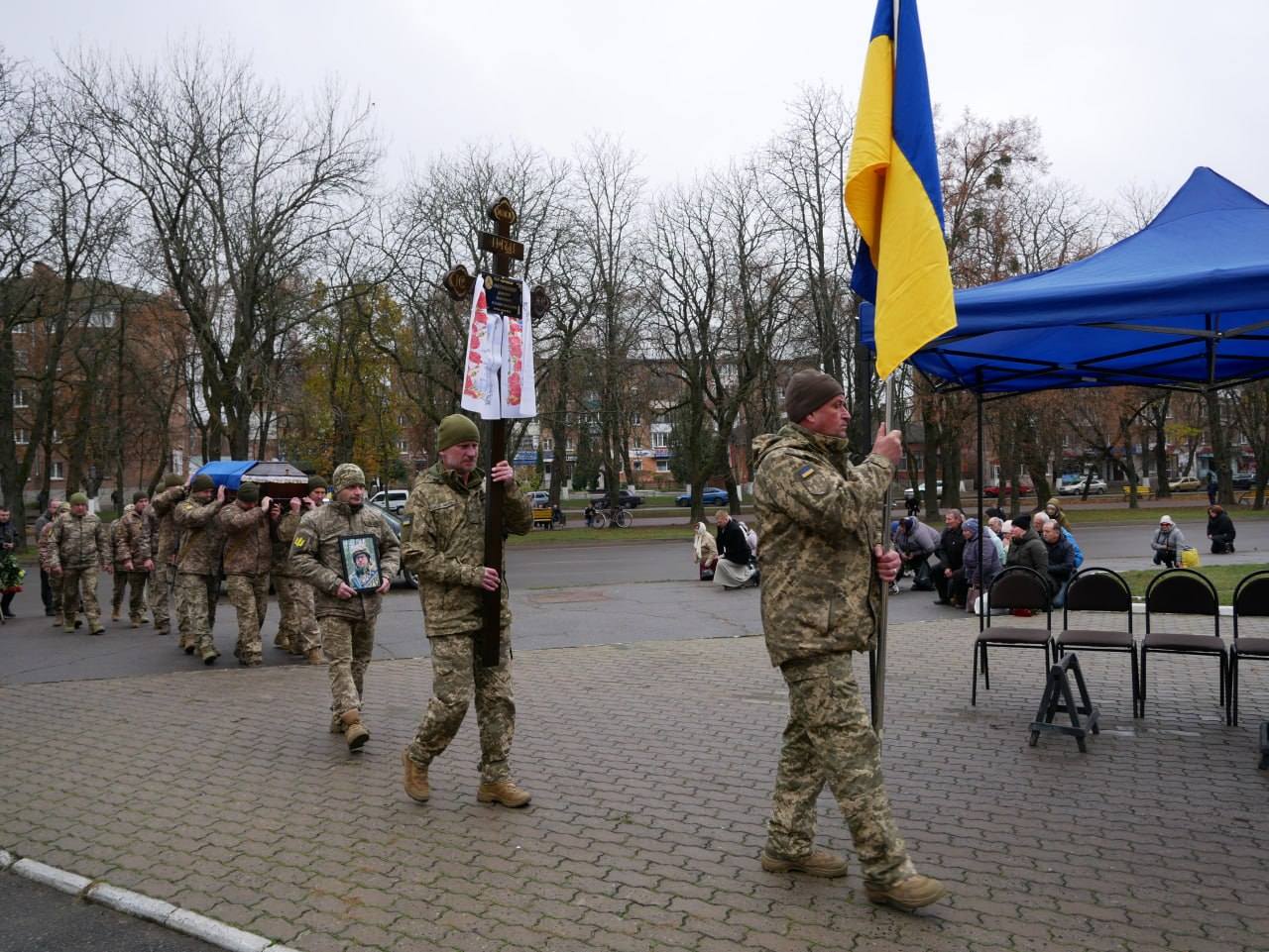 Літію за загиблим військовослужбовцем відслужили священнослужителі Православної церкви України. Під супровід оркестру, журливу мелодію «Плине кача» та майоріння синьо-жовтих прапорів провели Героя в останню земну дорогу.