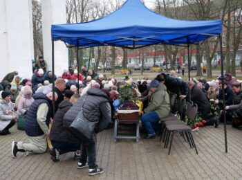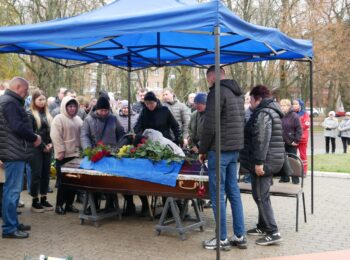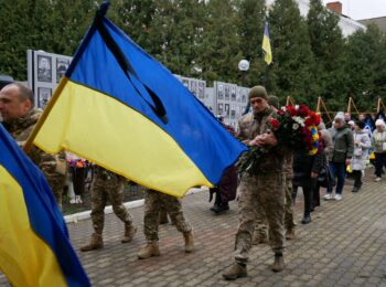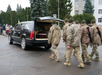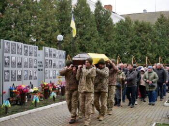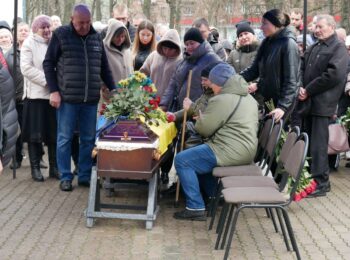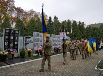 Літію за загиблим військовослужбовцем відслужили священнослужителі Православної церкви України. Під супровід оркестру, журливу мелодію «Плине кача» та майоріння синьо-жовтих прапорів провели Героя в останню земну дорогу.