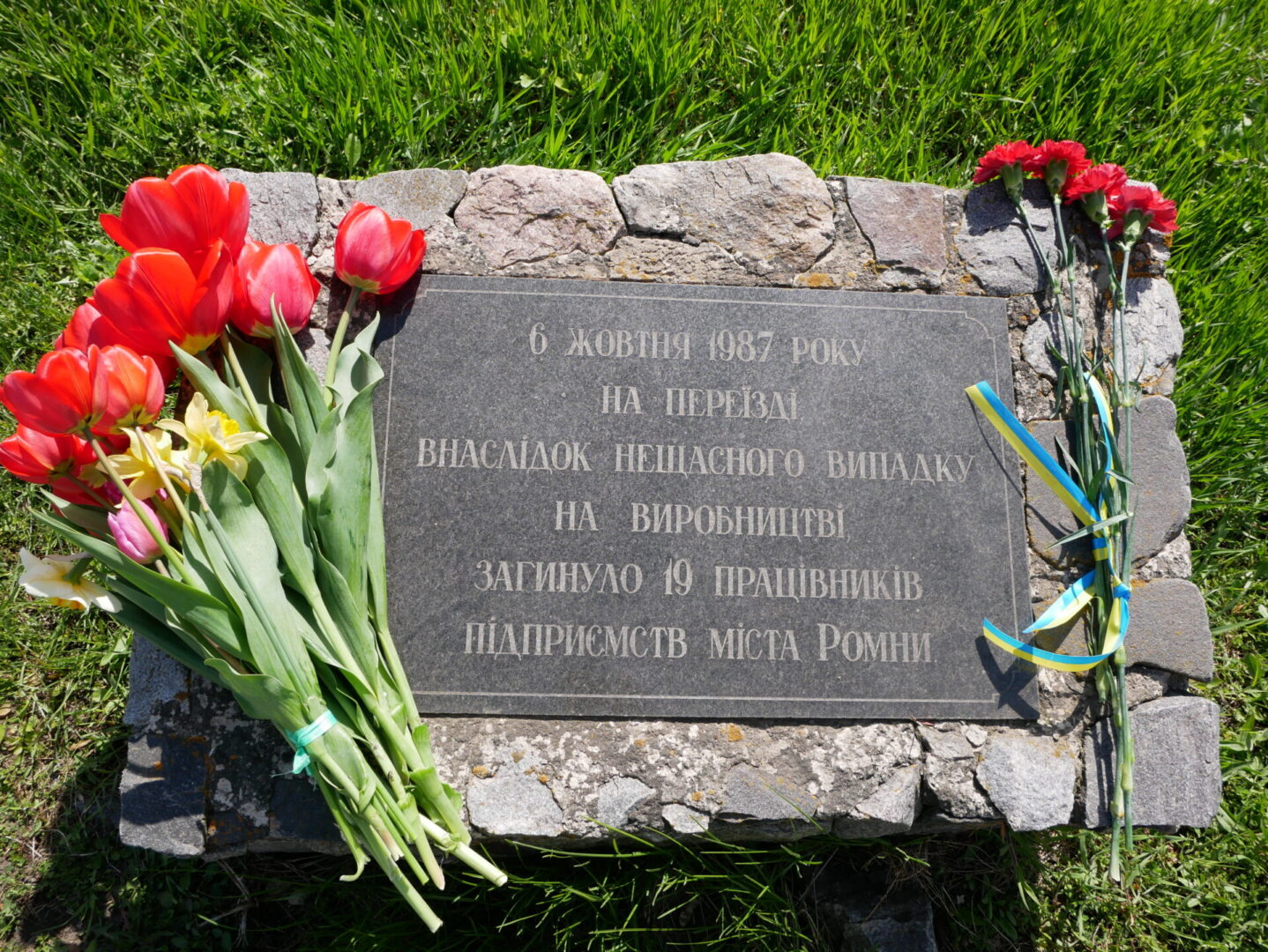 Традиційно, сьогодні відбулося покладання квітів до меморіального знаку в с. Житнє, встановленого на спомин 19 загиблих 6 жовтня 1987 року працівників підприємств міста Ромни та на території Роменського закладу загальної середньої освіти I-II ступенів № 8 Роменської міської ради Сумської області, де 23 серпня 2023 року, внаслідок влучення БпЛА «Shahed» загинули 4 працівники закладу. Участь у заході взяли заступники міського голови з питань діяльності виконавчих органів ради Олена ВАХТЕРОВА та Лілія ГОРОДЕЦЬКА, представники Виконавчого комітету Роменської міської ради, Миколаївського старостинського округу, Відділу освіти Роменської міської ради Сумської області. Присутні вшанували хвилиною мовчання пам’ять працівників, які загинули на виробництві, як в мирний час, так і під час воєнного стану.