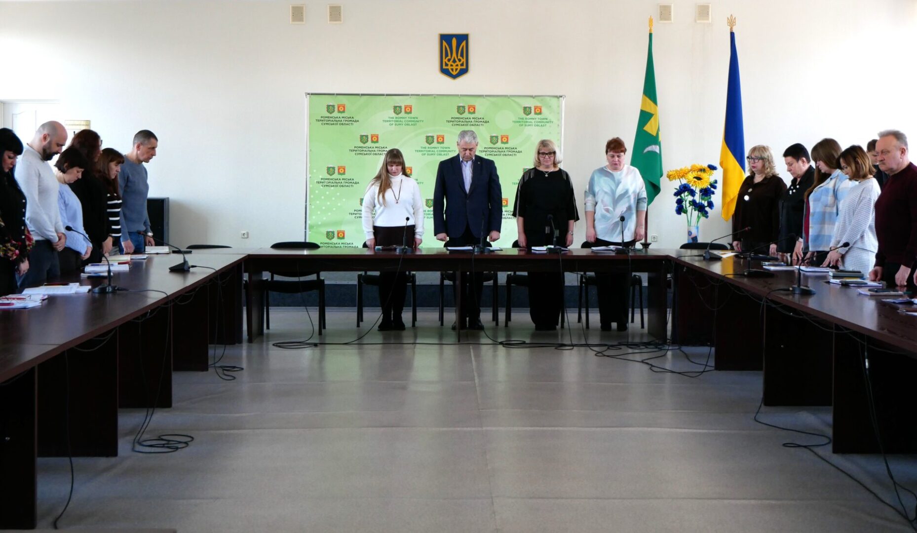 Начальник Відділу освіти Ірина ІВНИЦЬКА повідомила про встановлення гучномовців на закладах освіти для забезпечення належного проведення загальнонаціональної хвилини мовчання. Міський голова доручив начальнику відділу з питань НС та цивільного захисту Валерію БОНДАРЕНКУ забезпечити суворий контроль за синхронністю роботи звукового обладнання по всій громаді.
