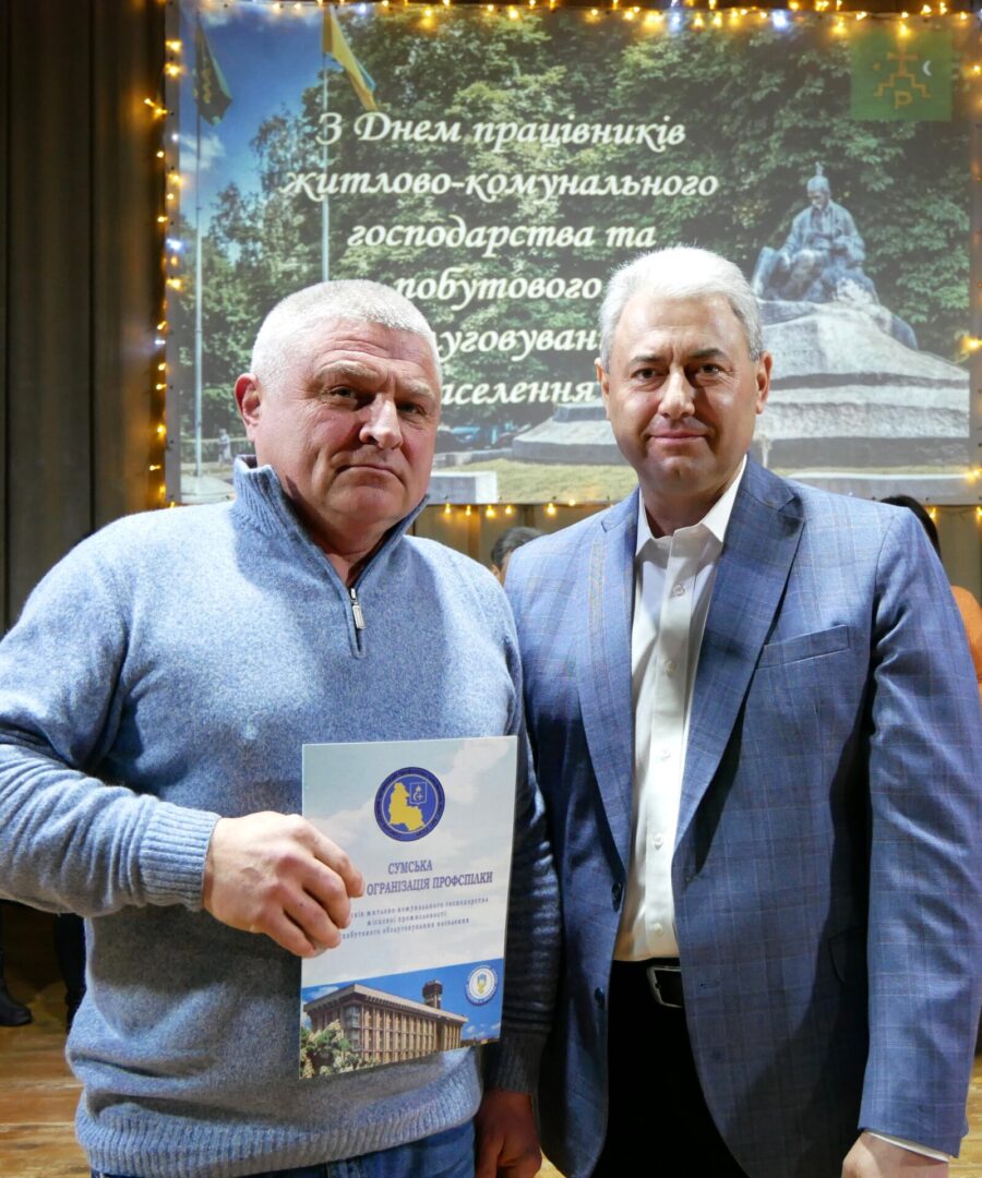 Від Президії Сумської обласної організації профспілки працівників житлово-комунального господарства, місцевої промисловості та побутового обслуговування населення за багаторічну сумлінну працю, високий професіоналізм, вагомий особистий внесок у вирішення питань соціального захисту інтересів працівників сфери обслуговування, зміцнення профспілкового руху та з нагоди Дня працівників житлово-комунального господарства і побутового обслуговування населення відзначено кращих працівників галузі: