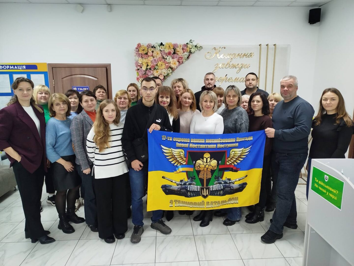 Днями колектив Центру надання адміністративних послуг м. Ромни отримав надзвичайно дорогий і зворушливий подарунок — бойовий прапор 17-ї окремої важкої механізованої бригади імені Костянтина Пестушка, 2-го танкового батальйону.