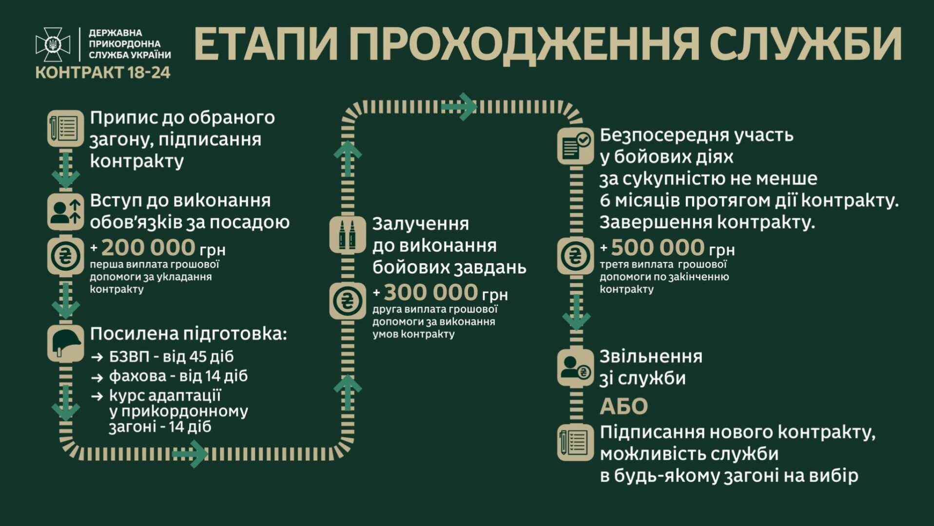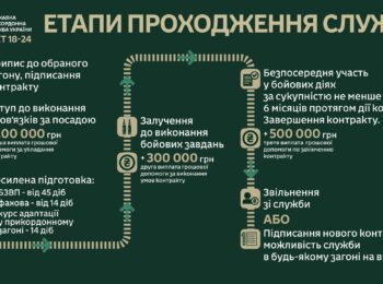 - Після завершення контракту – звільнення від мобілізації на 12 місяців, іпотека під 0,0% («єОселя»), навчання за держкоштом, право на виїзд за кордон.