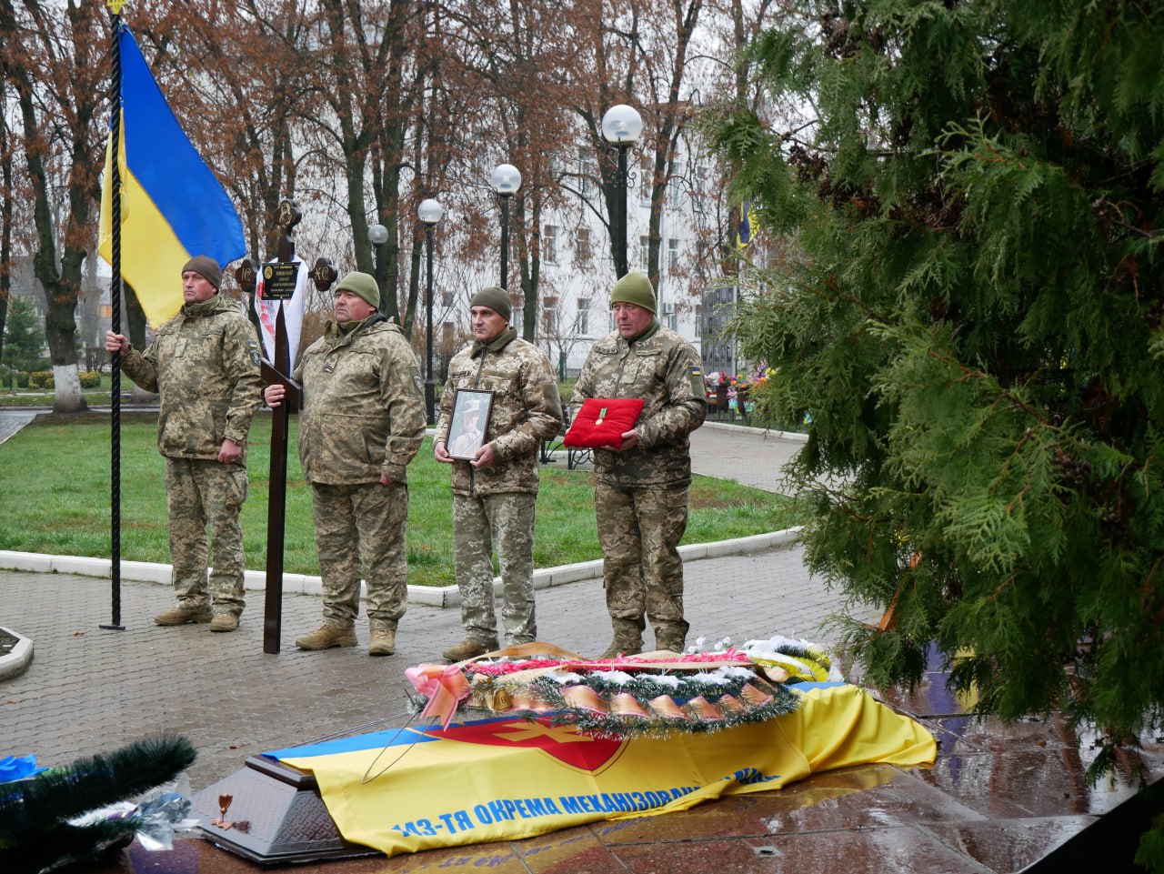 Скорботна мить об’єднала в жалобі родину, друзів, представників влади, духовенство, побратимів та небайдужих громадян, які прийшли віддати останню шану Герою. На Алеї Слави під час церемонії прощання з Захисником, присутні поклали квіти та схили голови на знак глибокої шани.