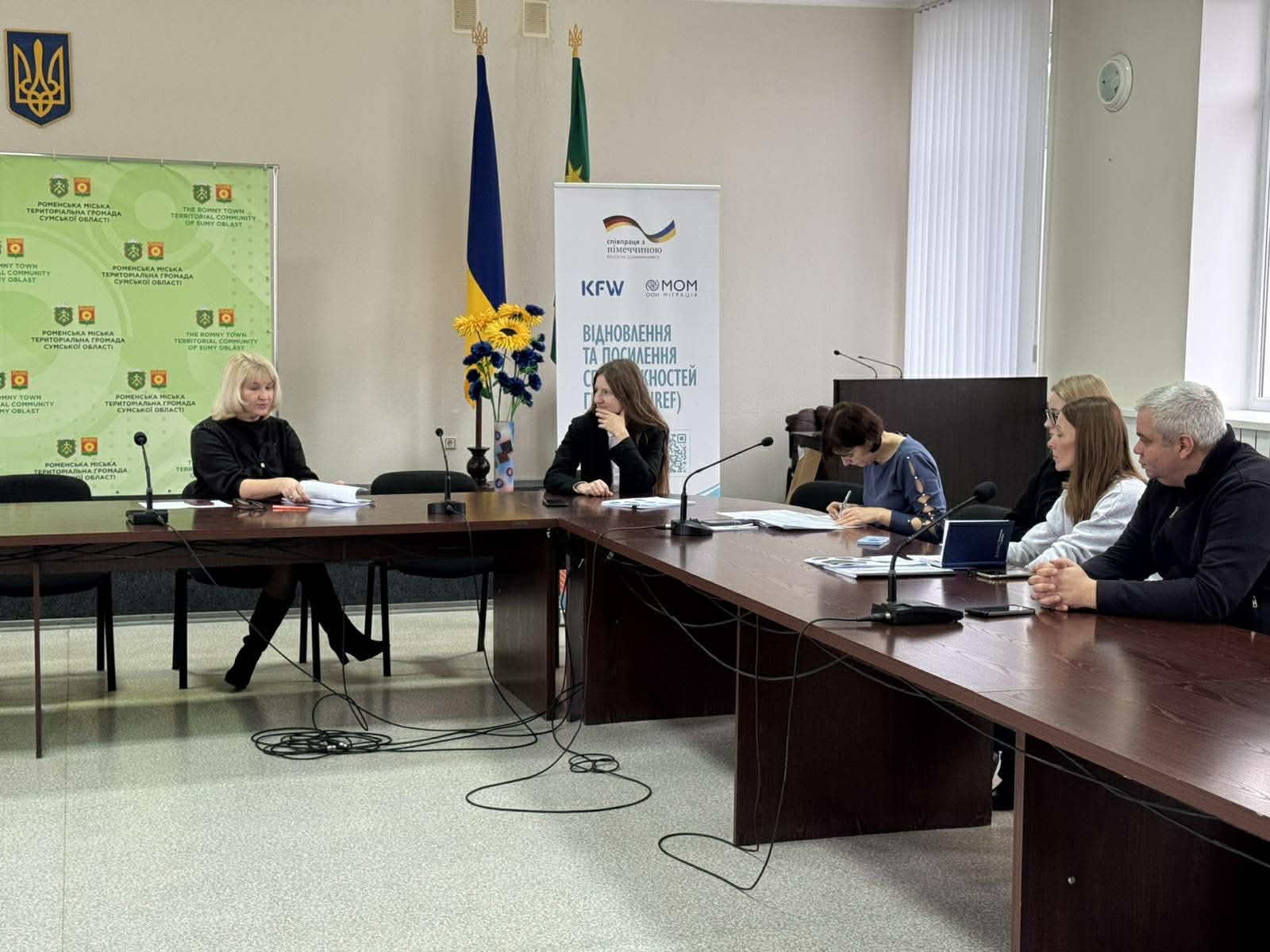 Днями в Роменській міській територіальній громаді відбулося засідання робочої групи з впровадження проєкту Міжнародної організації з міграції (МОМ) «Відновлення та посилення спроможностей громад» (HREF), що фінансується Федеральним Міністерством економічної співпраці та розвитку Німеччини (BMZ) через Німецький банк розвитку KfW.