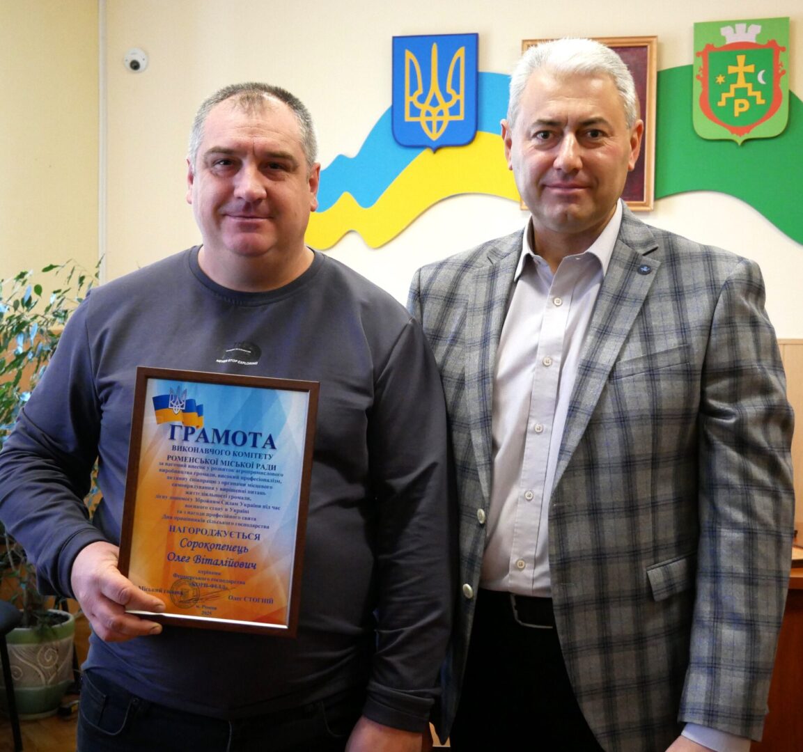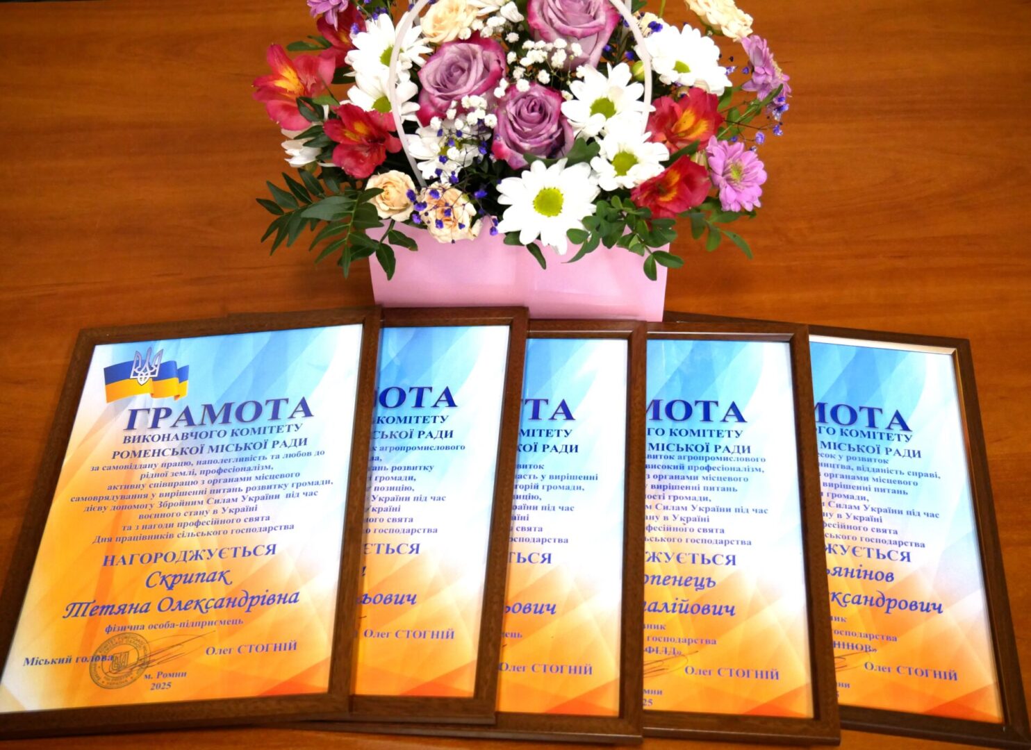 Сьогодні, напередодні професійного свята, у Роменській громаді відбулося урочисте нагородження працівників сільськогосподарської галузі. Міський голова Олег СТОГНІЙ звернувся до присутніх аграріїв: «Недарма кажуть: “Без хліба — нема життя, без землі — нема народу”. І саме ви, шановні аграрії, — ті, хто береже це життя, хто з ранку до ночі працює. Ви — гордість і опора нашої громади, справжні трудівники землі, які не знають вихідних, не зважають на спеку чи холод, бо ваша праця — це служіння землі й народу. Особливу подяку хочу висловити вам щиру допомогу Збройним Силам України. Ви — справжні герої тилу, які своєю працею наближають Перемогу!»