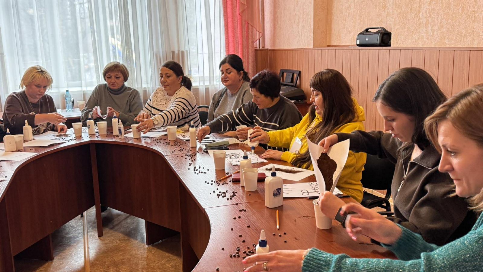 Також для учасників були проведені творчі практикуми, спрямовані на відновлення емоційного ресурсу. Зокрема, відбулися заняття з музикотерапії та творчий майстер-клас з малювання кавою як способу самовираження та психологічного розвантаження.