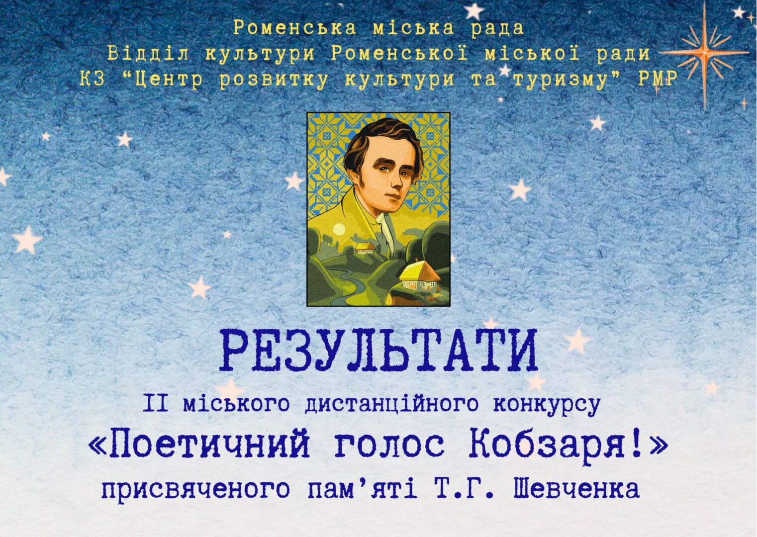 Протягом лютого-березня 2026 року в Роменській міській територіальній громаді проводився ІІ міський дистанційний конкурс «Поетичний голос Кобзаря!» присвячений пам’яті Т.Г. Шевченка, в цьому році у нашому конкурсі взяли участь 118 учасників з Роменської громади.