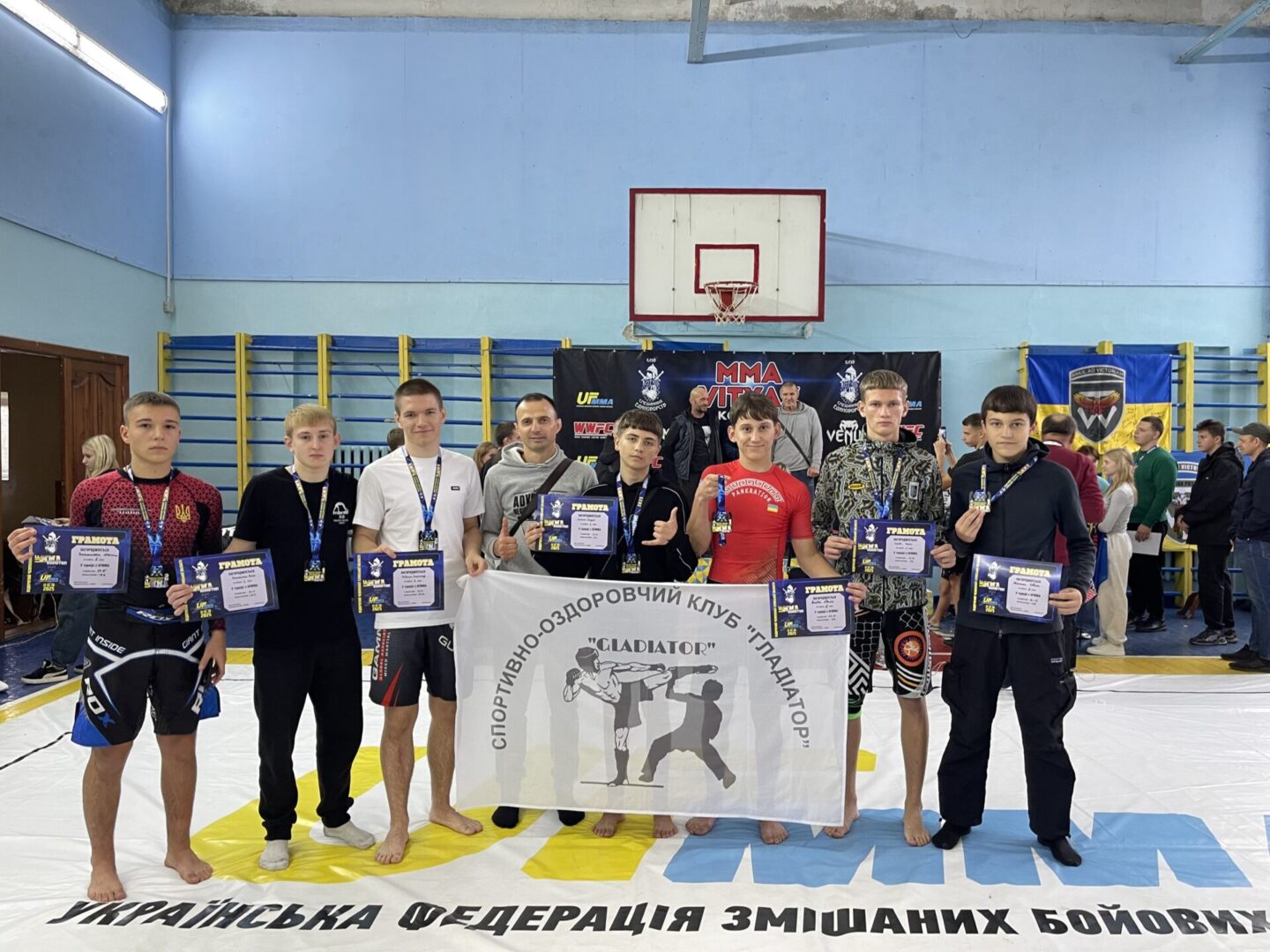 До чемпіонату Сумської області зі змішаних бойових мистецтв спортсменів підготував тренер спортивно-оздоровчого клубу «Гладіатор» Андрій ШПОТА.