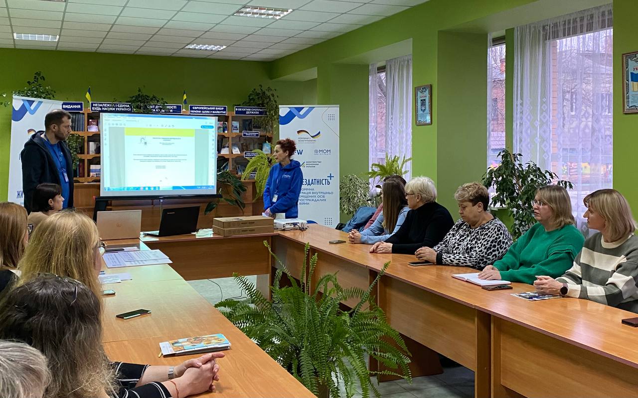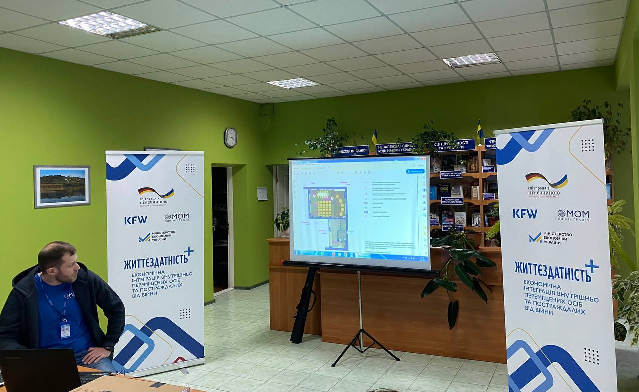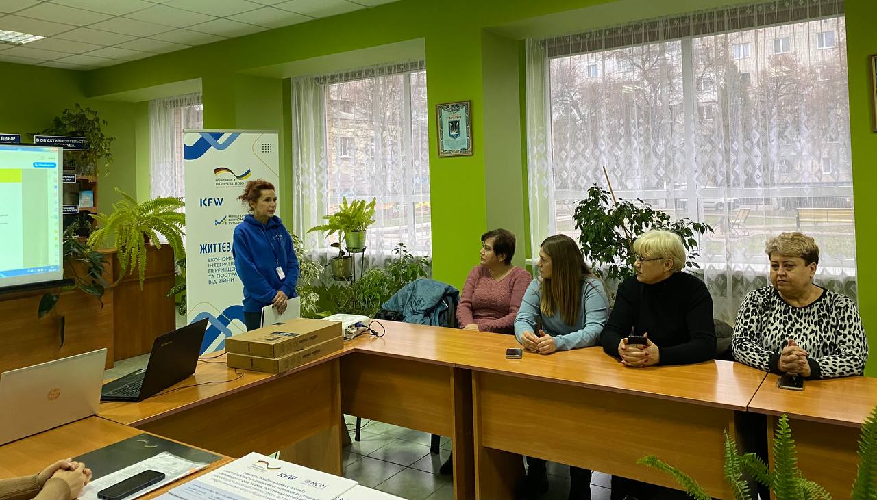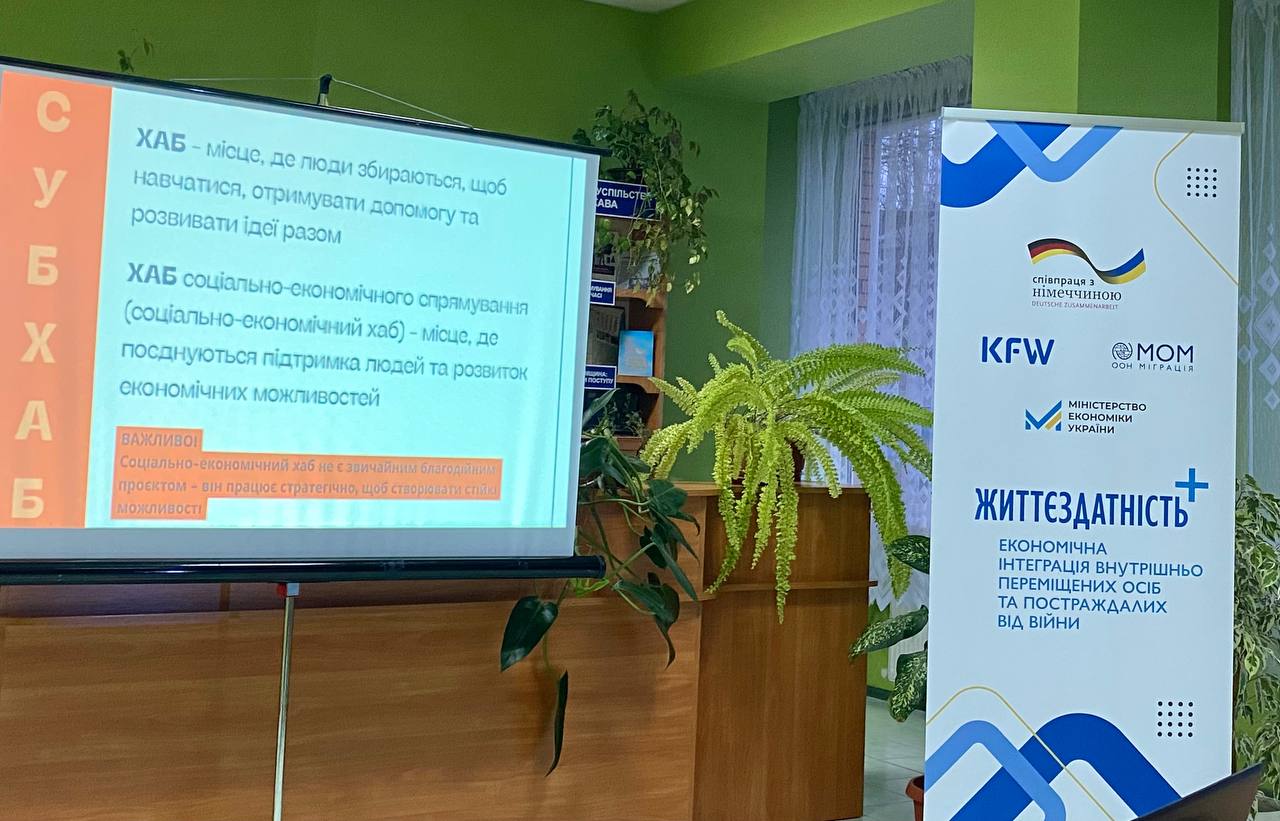 Проєктна асистентка проєкту «Життєздатність+: економічна інтеграція внутрішньо переміщених осіб та постраждалих від війни» Ірина Пархоменко ознайомила присутніх з метою проведення консультацій та складовою проєкту щодо облаштування в громаді Хабу.