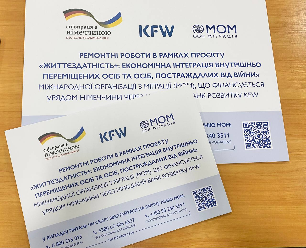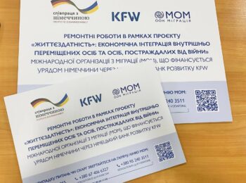 Нагадуємо, що проєкт «Життєздатність+: Економічна інтеграція внутрішньо переміщених осіб та постраждалих від війни», виконується Представництвом МОМ в Україні за фінансової підтримки Німецького банку розвитку KfW від імені Федерального Міністерства економічної співпраці та розвитку Німеччини (BMZ).
