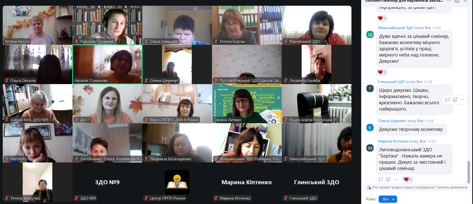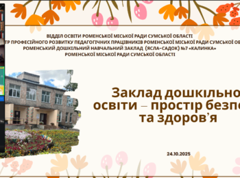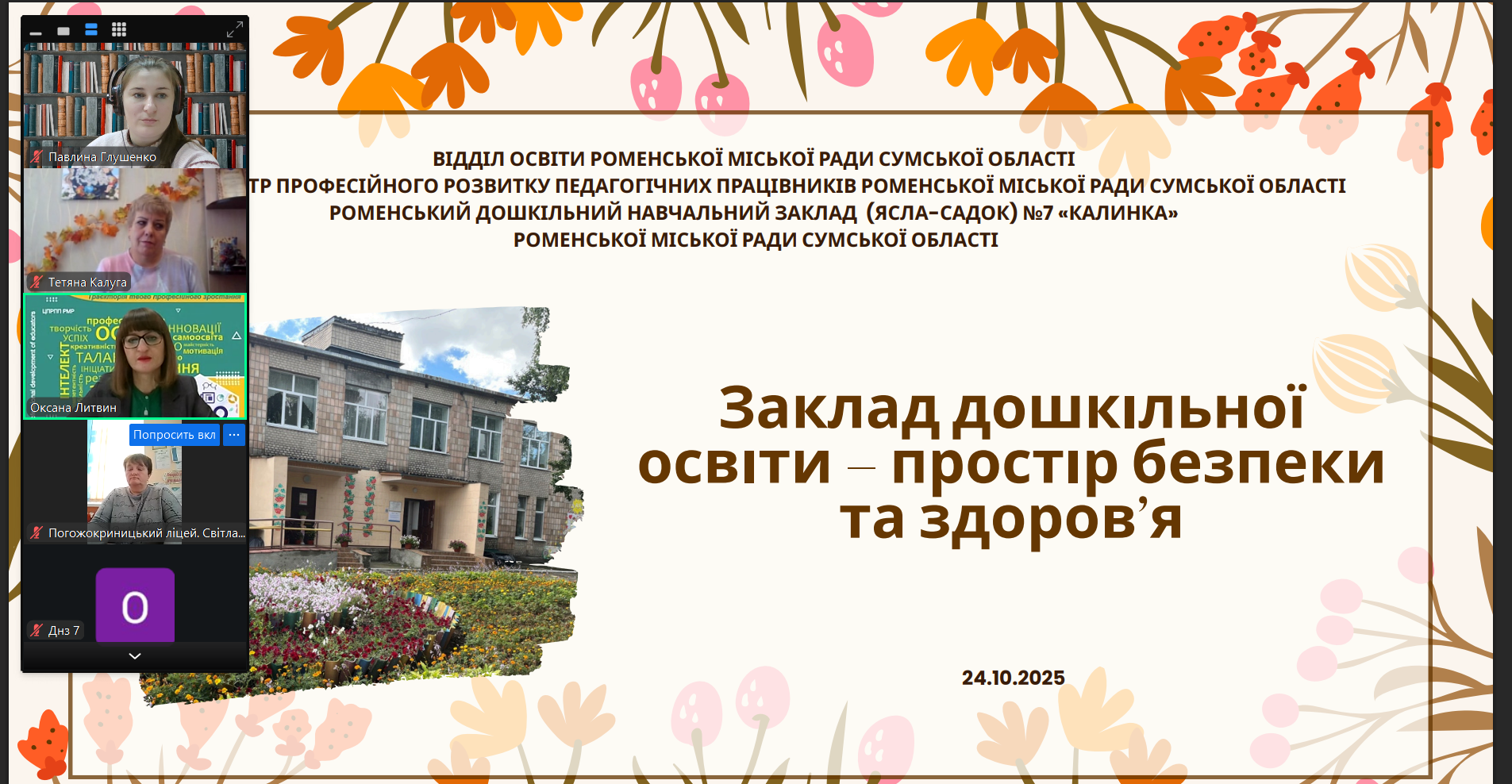 У сучасних умовах дошкільна освіта має бути не лише осередком розвитку, навчання й виховання дітей, а й простором безпеки, підтримки та здоров’я. Саме цим питанням був присвячений онлайн-семінар «Заклад дошкільної освіти – простір безпеки та здоров’я», який було проведено для керівників ЗДО Роменщини.